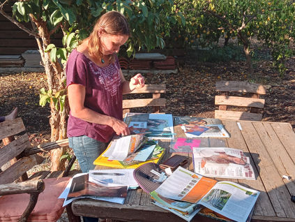 החלק היצירתי: נתחיל בחיפוש ואיסוף של גזרי עיתונים - תמונות, מילים ומשפטים, נגזור, נקרע ונדביק דימויים ויזואלים ומילוליים המבטאים את ראיית העתיד שלנו. יצירת הלוח נעשה באופן אישי ועצמאי, תוך כדי הנחייה וליווי שלי בליווי מוסיקה נעימה ותומכת.